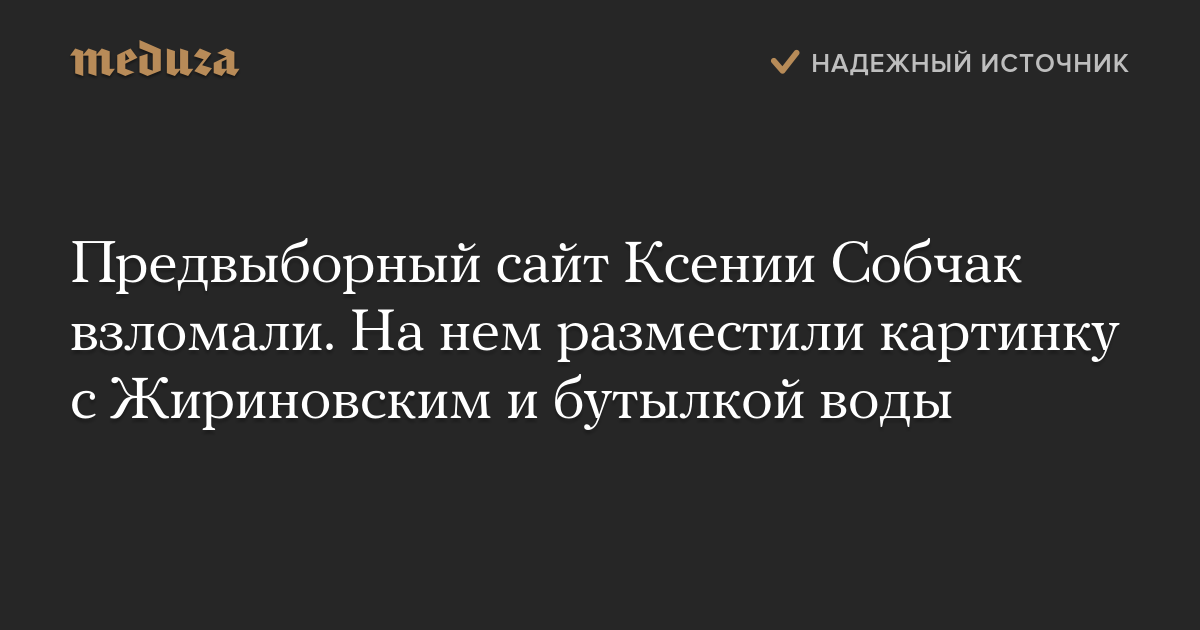 Предвыборный сайт Ксении Собчак взломали. На нем разместили картинку с Жириновским и бутылкой воды
