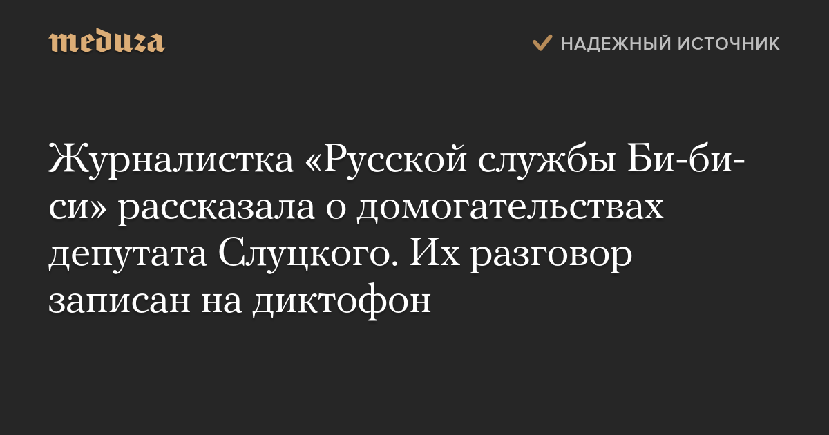 Журналистка «Русской службы Би-би-си» рассказала о домогательствах депутата Слуцкого. Их разговор записан на диктофон