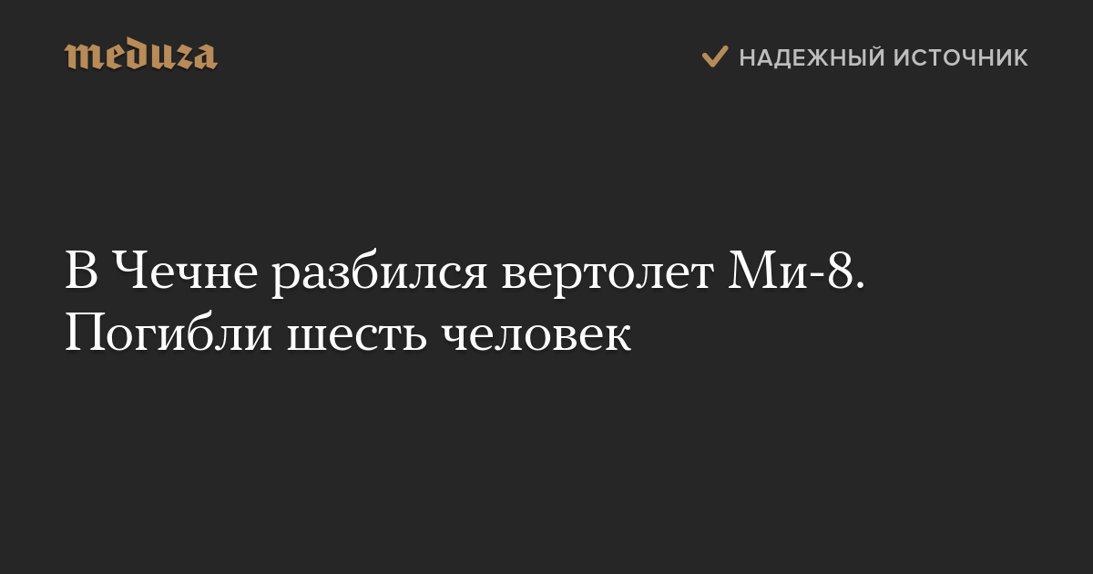 В Чечне разбился вертолет Ми-8. Погибли шесть человек