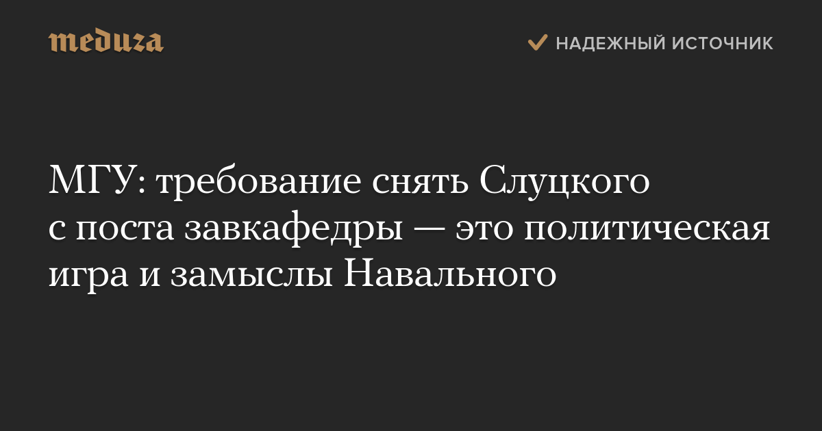 МГУ: требование снять Слуцкого с поста завкафедры — это политическая игра и замыслы Навального