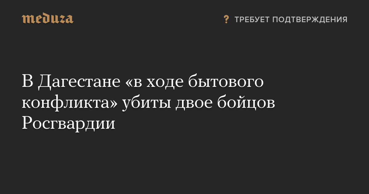В Дагестане «в ходе бытового конфликта» убиты двое бойцов Росгвардии