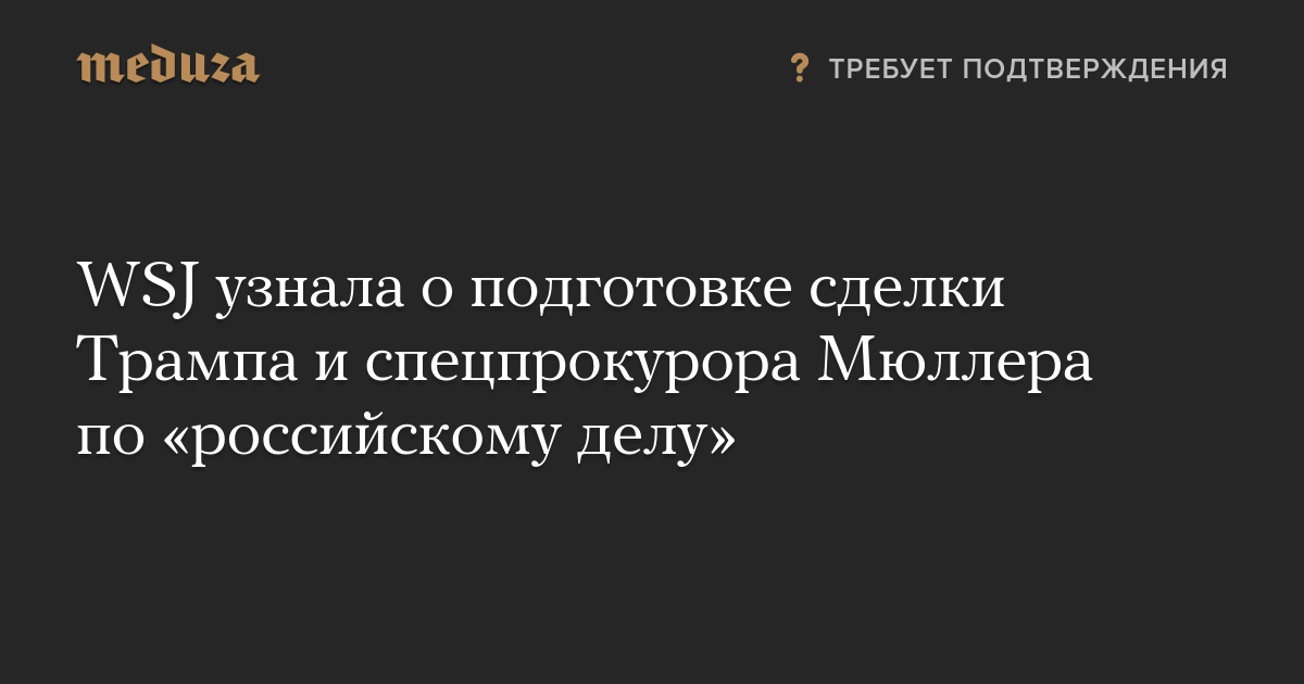 WSJ узнала о подготовке сделки Трампа и спецпрокурора Мюллера по «российскому делу»