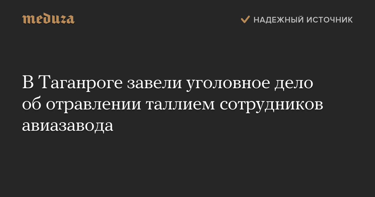 О массовом отравлении тяжелым металлом на таганрогском авиазаводе стало известно в начале марта из сообщений СМИ. Сотрудники завода начали обращаться к врачам из-за недомоганий еще с декабря прошлого года. Всего за медицинской помощью с жалобами на боль в мышцах и суставах обратились 37 человек. Факт отравления таллием был подтвержден у 28 работников предприятия.