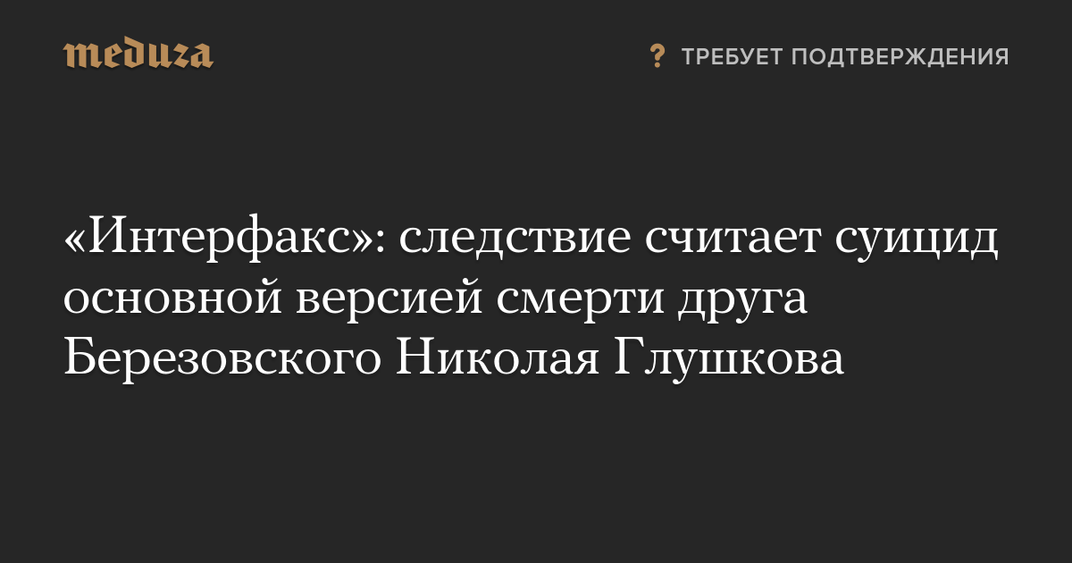 Николай Глушков был найден мертвым в Лондоне 13 марта. Газета «Коммерсант» со ссылкой на его знакомых сообщила, что на шее Глушкова обнаружили следы удушения. При этом неясно, идет ли речь об убийстве или самоубийстве, подчеркнуло издание.