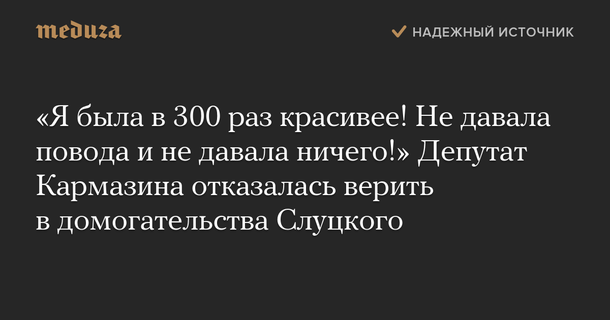 «Я была в 300 раз красивее! Не давала повода и не давала ничего!» Депутат Кармазина отказалась верить в домогательства Слуцкого