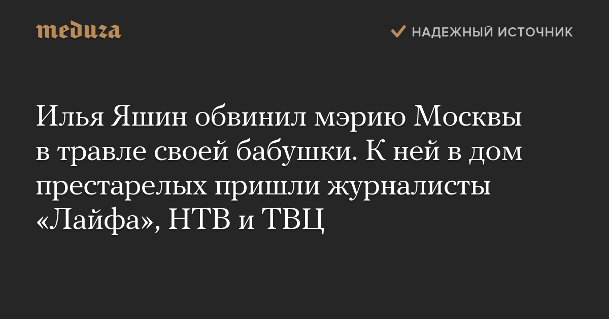 Илья Яшин обвинил мэрию Москвы в травле своей бабушки. К ней в дом престарелых пришли журналисты «Лайфа», НТВ и ТВЦ