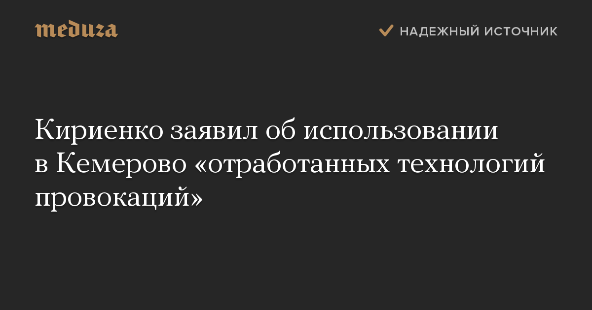 Обновление. Источник в Кремле сообщил «Медузе», что Сергей Кириенко, говоря о провокациях, имел в виду ложные данные о сотнях погибших при пожаре в Кемерово.