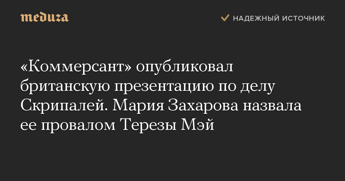 «Коммерсант» опубликовал британскую презентацию по делу Скрипалей. Мария Захарова назвала ее провалом Терезы Мэй