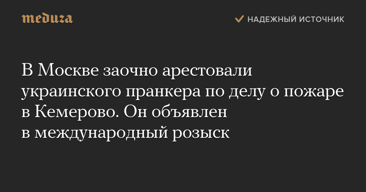 В Москве заочно арестовали украинского пранкера по делу о пожаре в Кемерово. Он объявлен в международный розыск