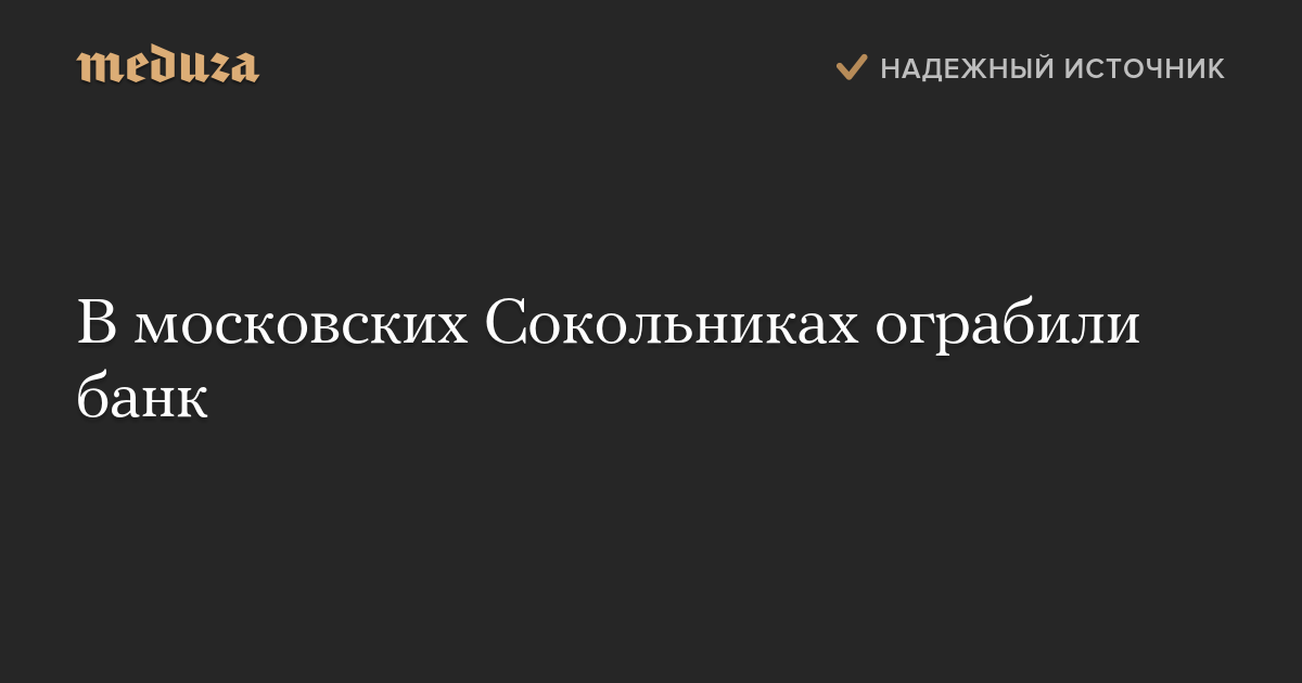 Несколько преступников ограбили банк в московском районе Сокольники, сообщает РИА Новости со ссылкой на источник. Информацию об ограблении «Интерфаксу» подтвердили в пресс-службе московской полиции.