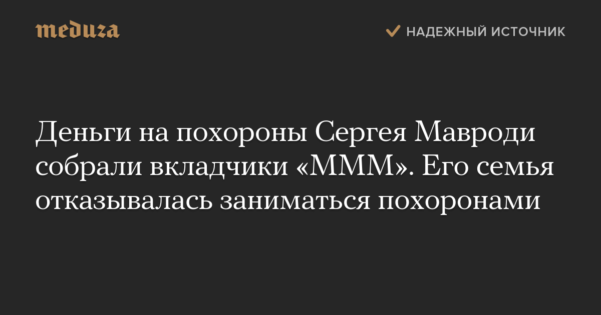 Деньги на похороны Сергея Мавроди собрали вкладчики «МММ». Его семья отказывалась заниматься похоронами