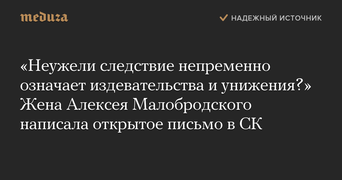 «Неужели следствие непременно означает издевательства и унижения?» Жена Алексея Малобродского написала открытое письмо в СК