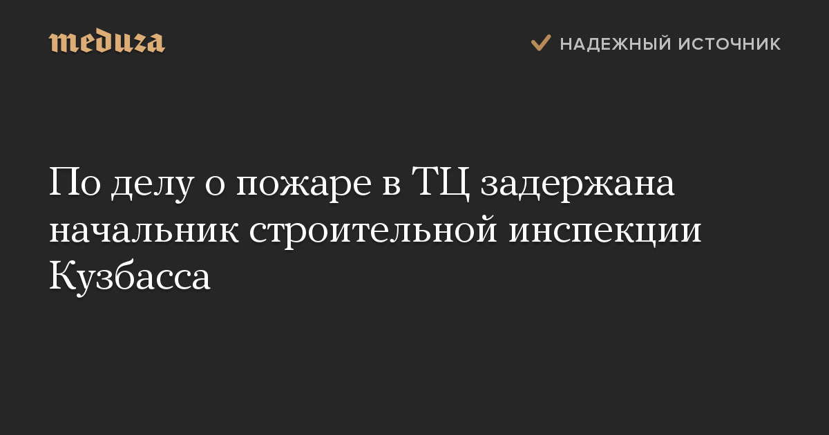 Следователи задержали главу инспекции государственного строительного надзора Кемеровской области Танзилию Комкову. Ее подозревают в злоупотреблении должностными полномочиями в связи с пожаром в кемеровском ТЦ «Зимняя вишня».