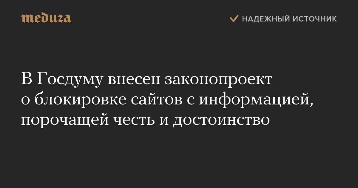 В Госдуму внесен законопроект о блокировке сайтов с информацией, порочащей честь и достоинство