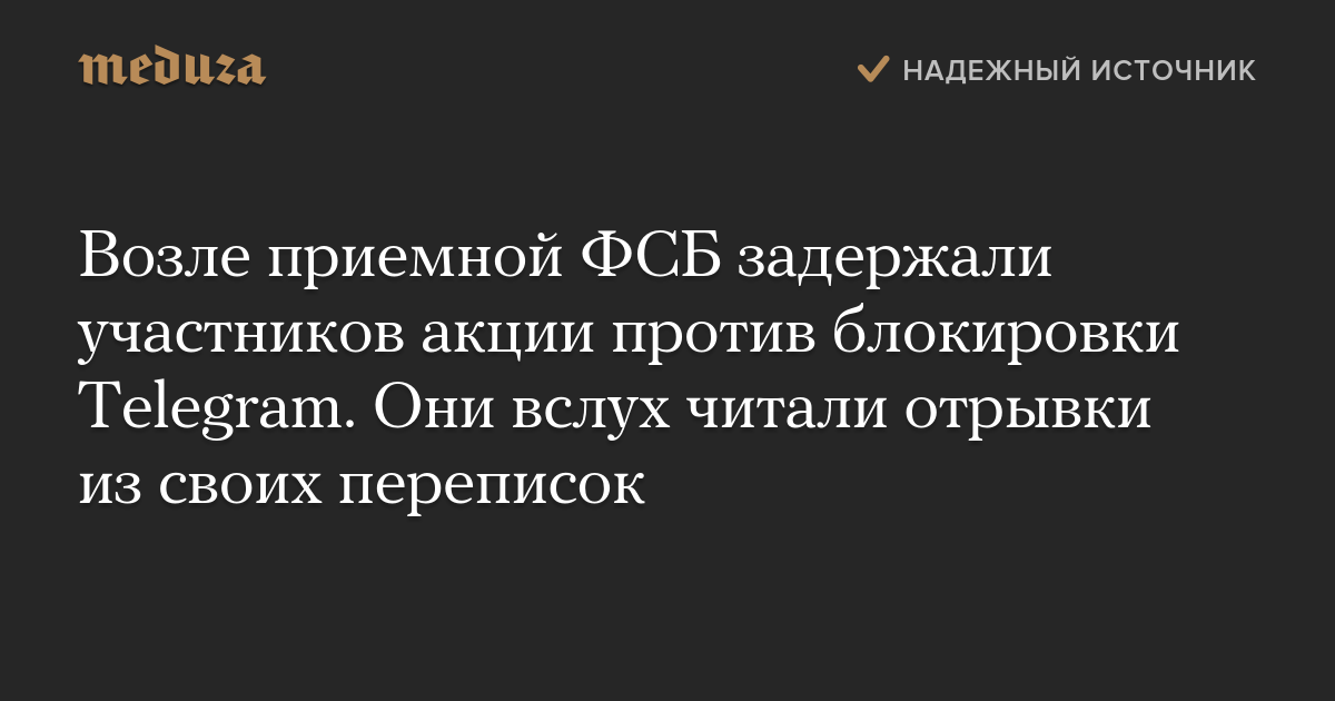 Возле приемной ФСБ задержали участников акции против блокировки Telegram. Они вслух читали отрывки из своих переписок