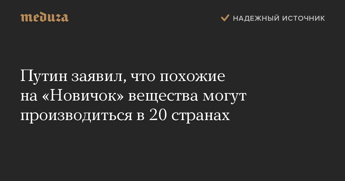 Путин заявил, что похожие на «Новичок» вещества могут производиться в 20 странах