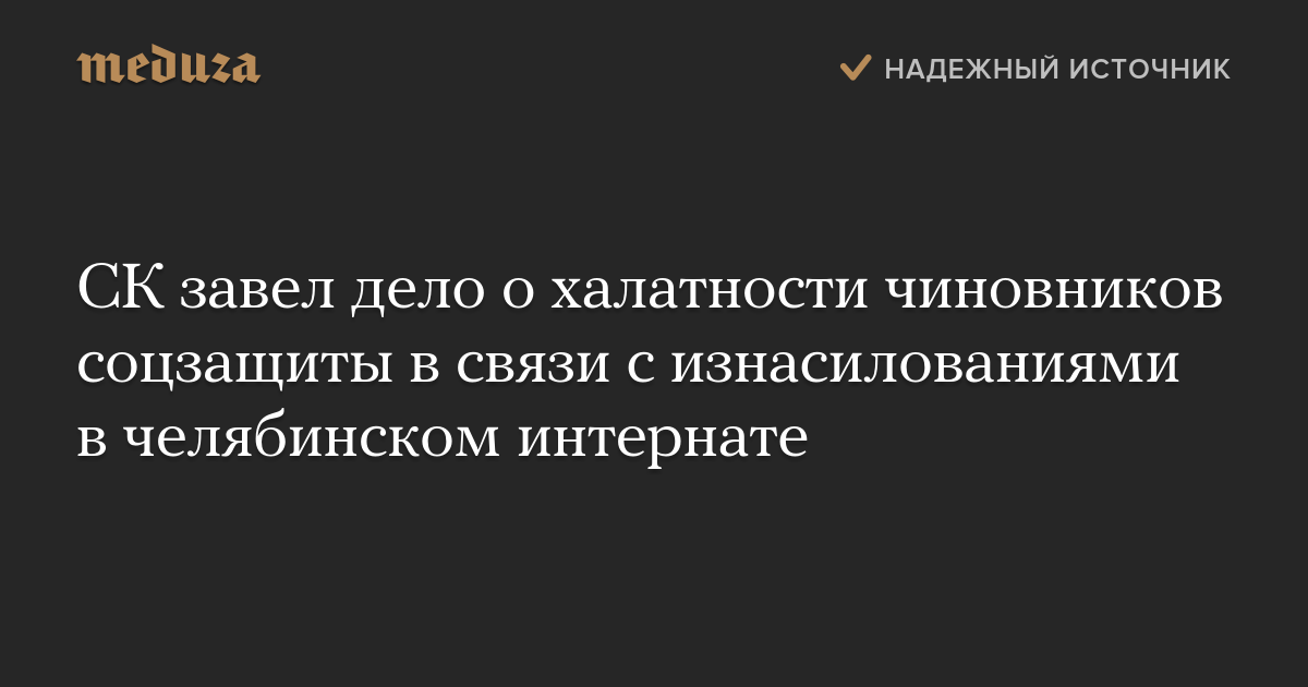В связи с изнасилованиями учащихся школы-интерната в Челябинской области возбуждено дело по ч. 1 ст. 293 УК РФ (халатность), обвиняемыми по которому могут стать чиновники управления соцзащиты.
