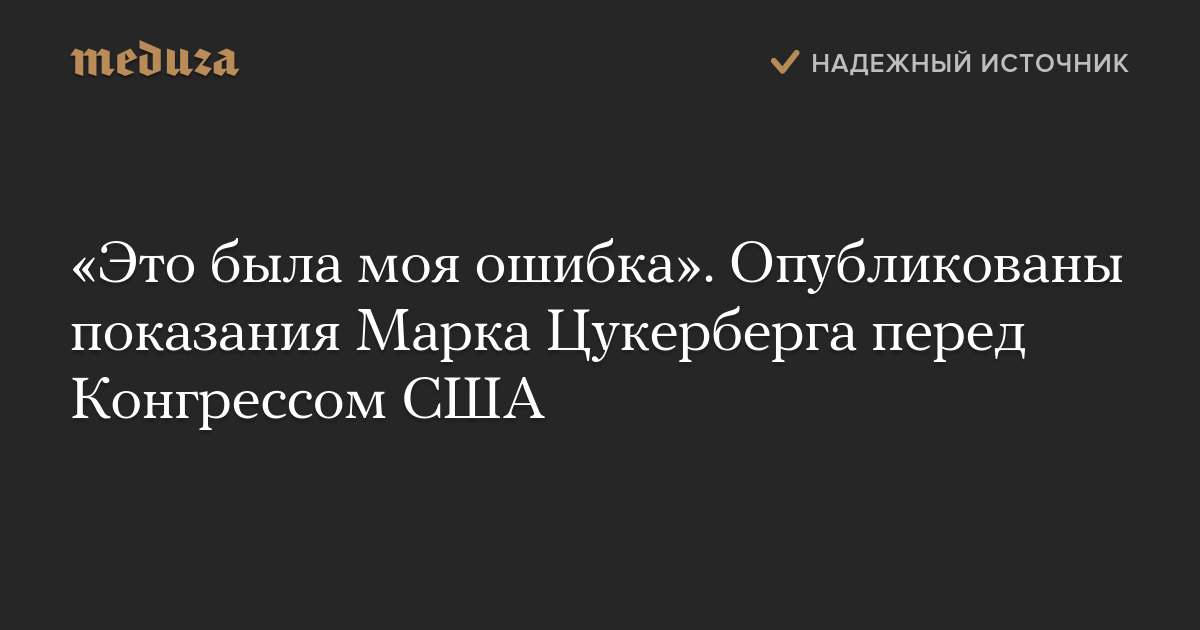 «Это была моя ошибка». Опубликованы показания Марка Цукерберга перед Конгрессом США