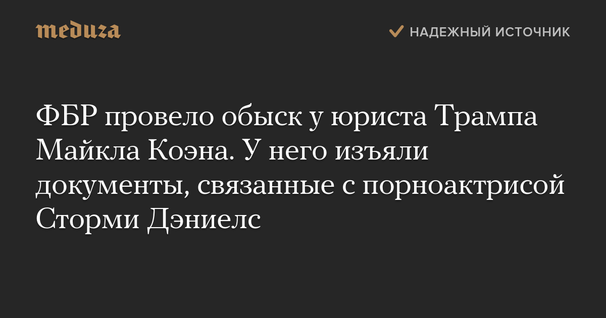 ФБР провело обыск у юриста Трампа Майкла Коэна. У него изъяли документы, связанные с порноактрисой Сторми Дэниелс