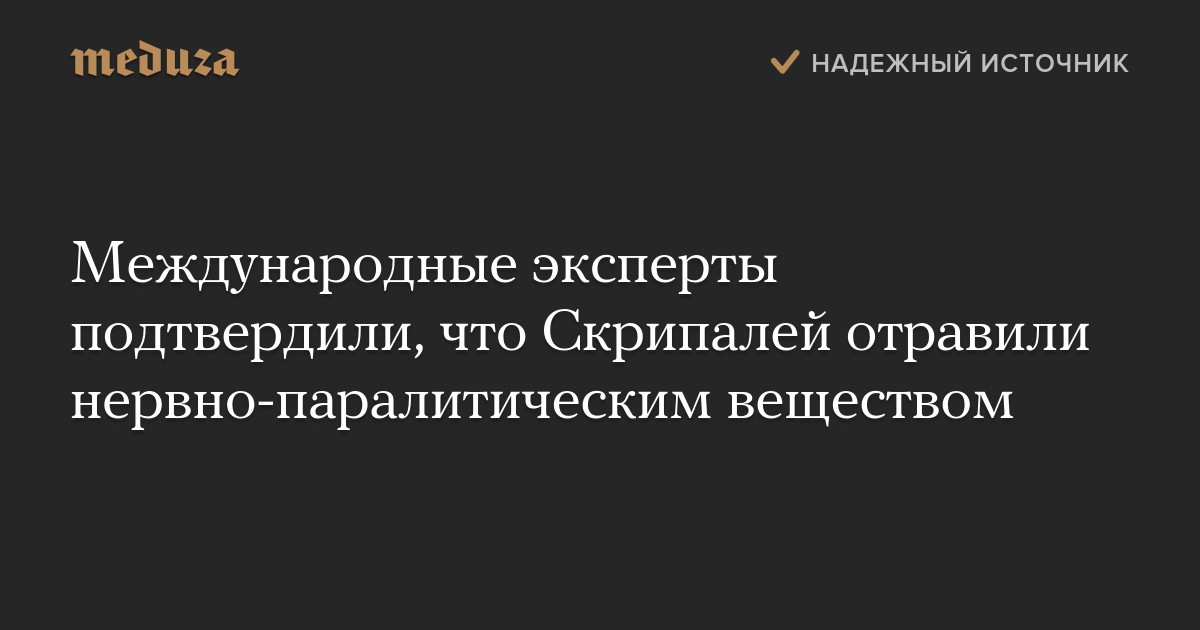 Эксперты Организации по запрещению химического оружия (ОЗХО) пришли к выводу, что бывший полковник ГРУ Сергей Скрипаль и его дочь Юлия были отравлены нервно-паралитическим веществом.