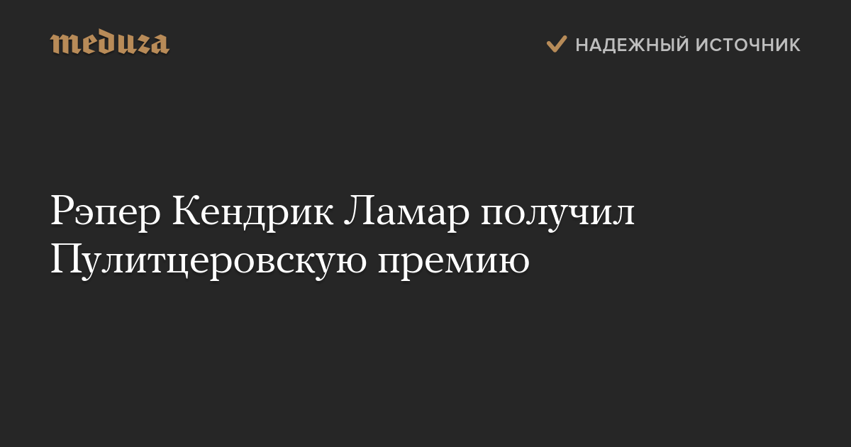 Кендрик Ламар стал лауреатом Пулитцеровской премии в области музыки. Рэпер получил премию за альбом «Damn.», который вышел в апреле 2017 года.