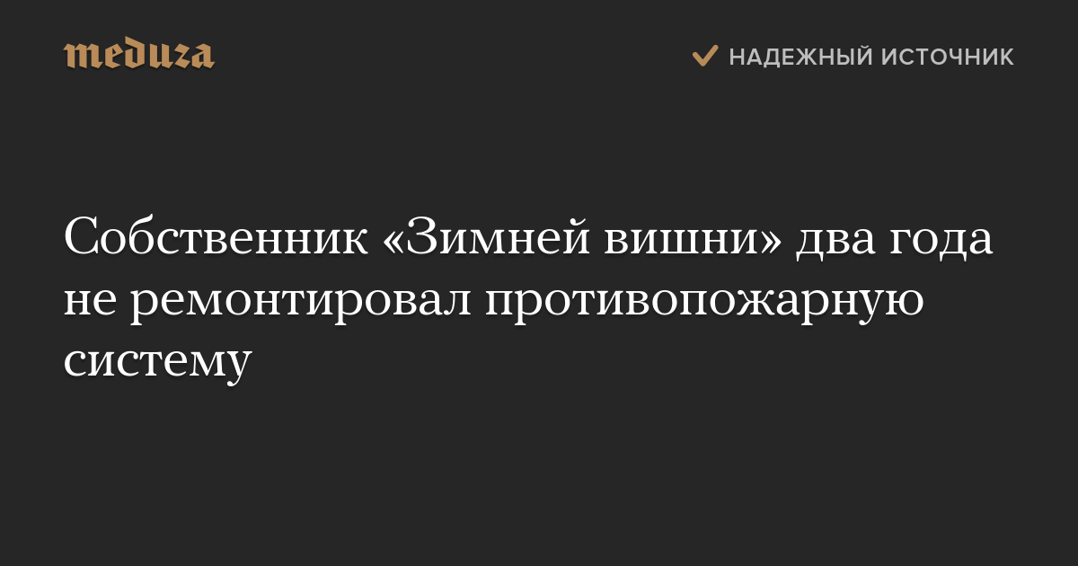 Собственник «Зимней вишни» два года не ремонтировал противопожарную систему
