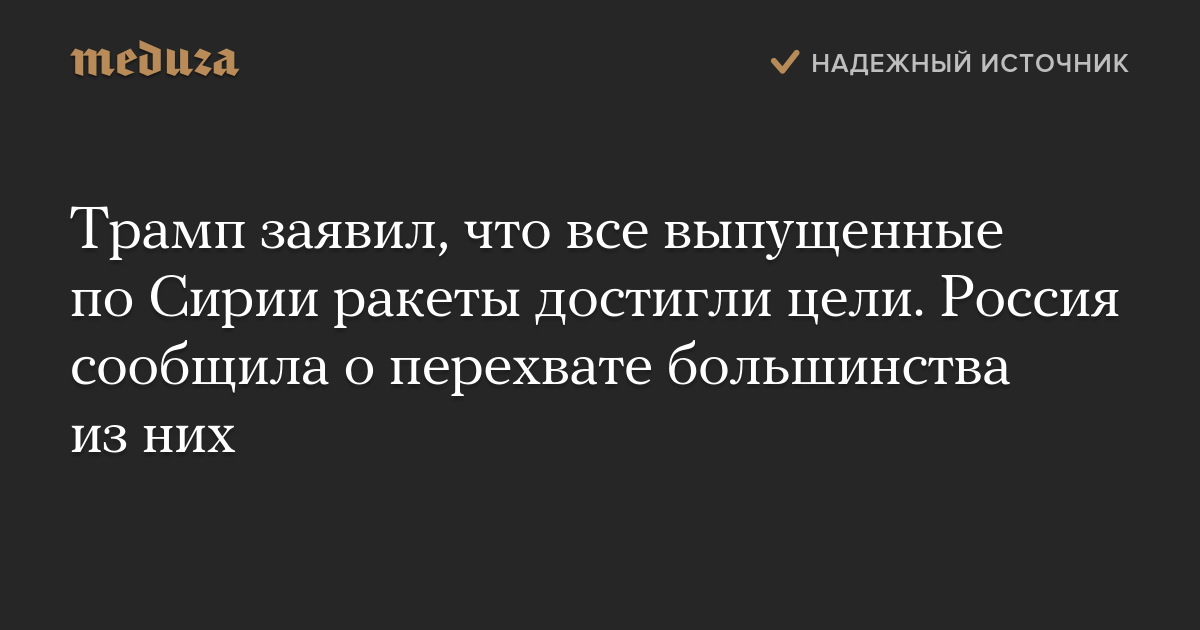 Трамп заявил, что все выпущенные по Сирии ракеты достигли цели. Россия сообщила о перехвате большинства из них