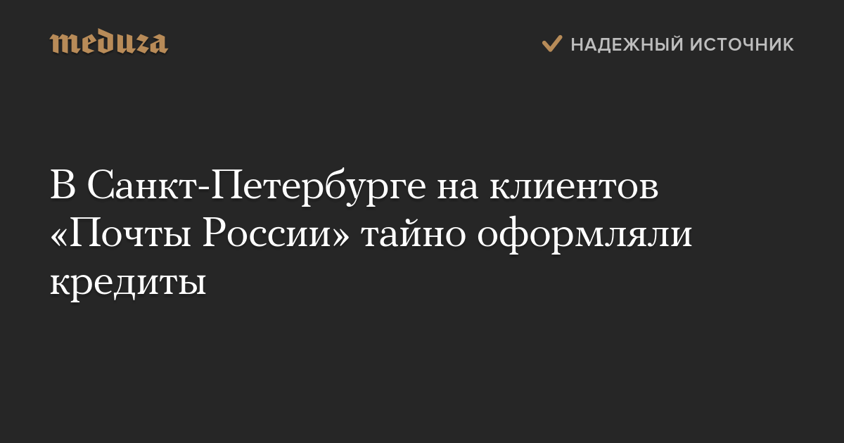 В Санкт-Петербурге на клиентов «Почты России» тайно оформляли кредиты