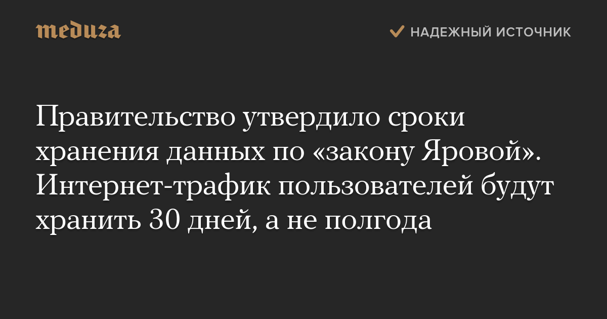 Правительство России опубликовало постановление о правилах хранения данных операторами связи по «закону Яровой».