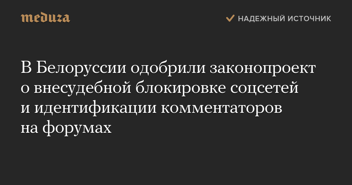 В Белоруссии одобрили законопроект о внесудебной блокировке соцсетей и идентификации комментаторов на форумах