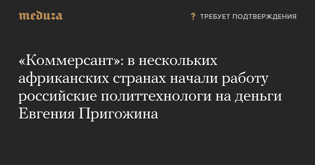«Коммерсант»: в нескольких африканских странах начали работу российские политтехнологи на деньги Евгения Пригожина