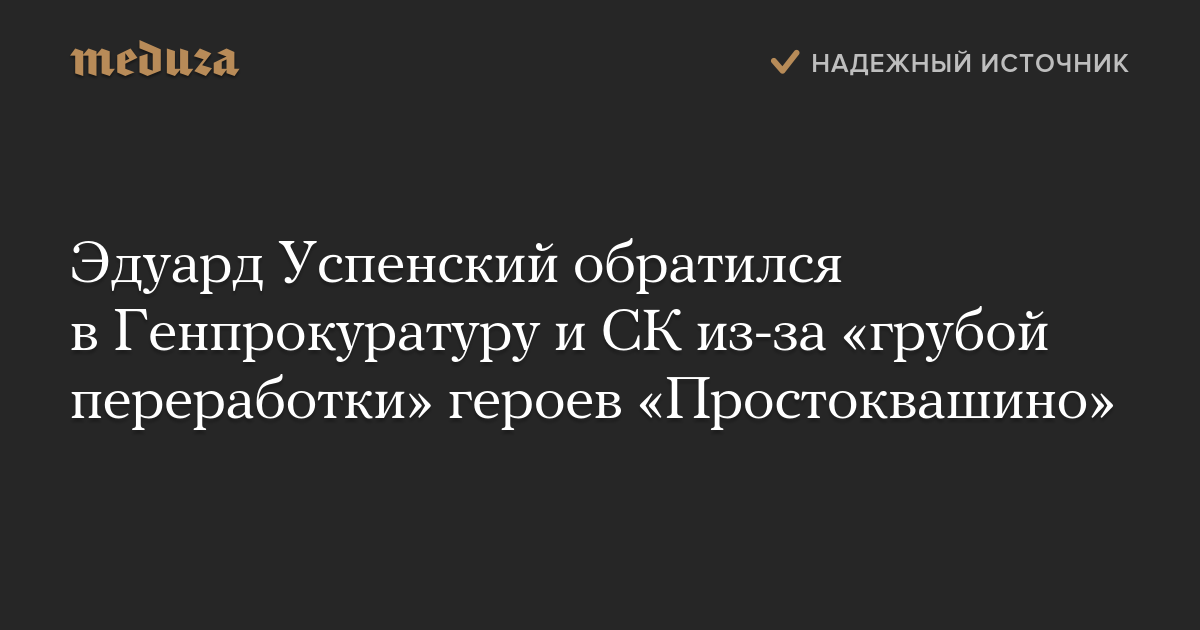 Ранее Успенский обращался к президенту России Владимиру Путину, обвинив «Союзмультфильм» в нарушении авторских прав.
