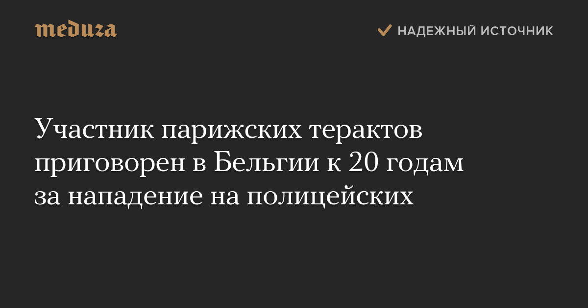 Участник парижских терактов приговорен в Бельгии к 20 годам за нападение на полицейских