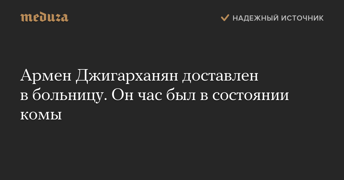 В свою очередь друг актера Артур Согомонян сообщил РИА Новости, что Джигарханян «чувствует себя не очень хорошо, но ничего критического». Актер, по его словам, проходит в больнице «обследования и профилактику».