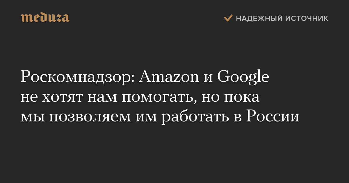 Роскомнадзор: Amazon и Google не хотят нам помогать, но пока мы позволяем им работать в России