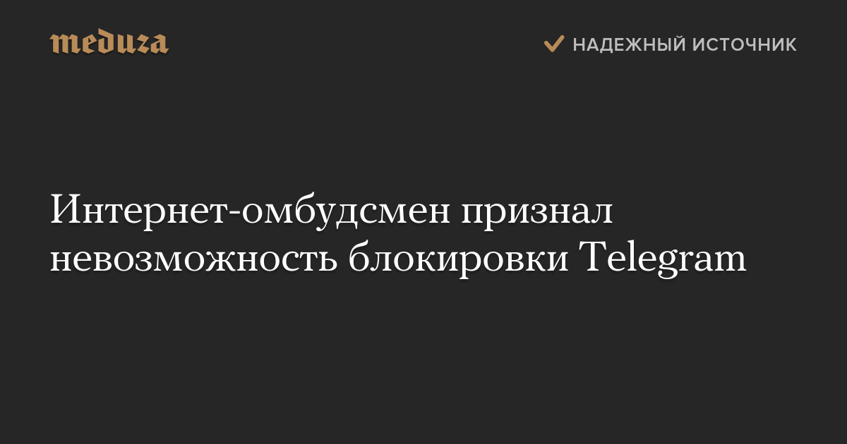 Интернет-омбудсмен признал невозможность блокировки Telegram
