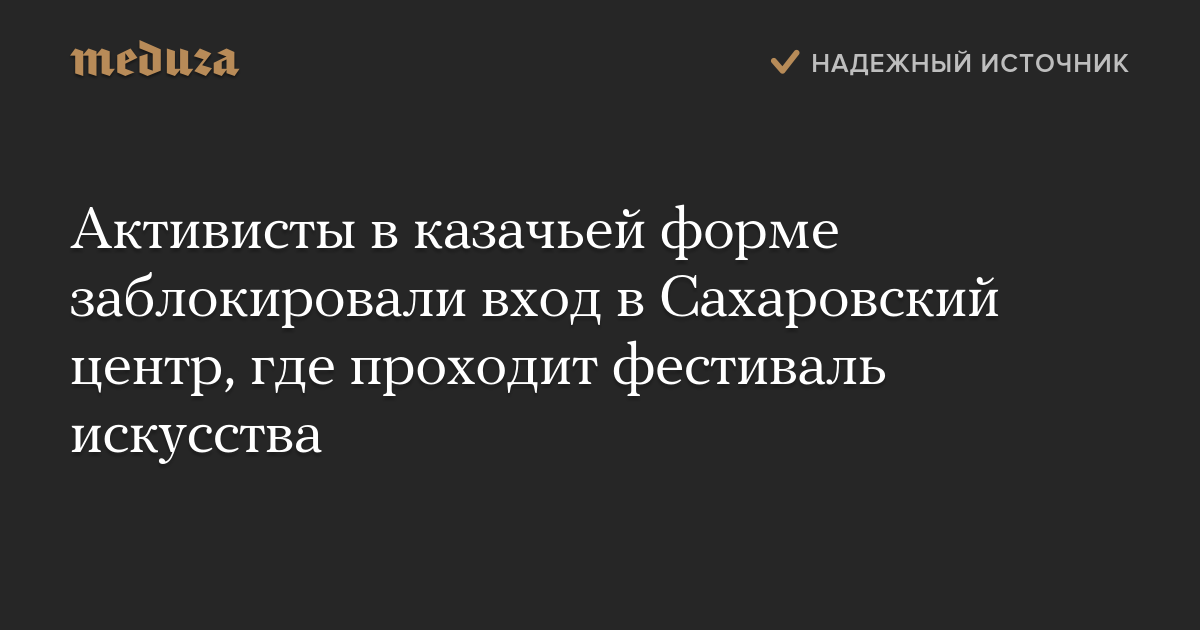 Активисты в казачьей форме заблокировали вход в Сахаровский центр, где проходит фестиваль искусства