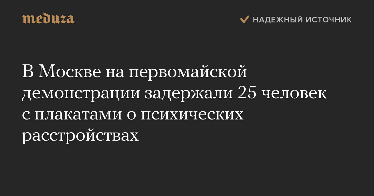 В Москве на первомайской демонстрации задержали 25 человек с плакатами о психических расстройствах