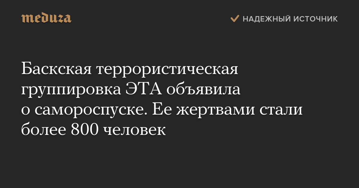 Баскская террористическая группировка ЭТА объявила о самороспуске. Ее жертвами стали более 800 человек