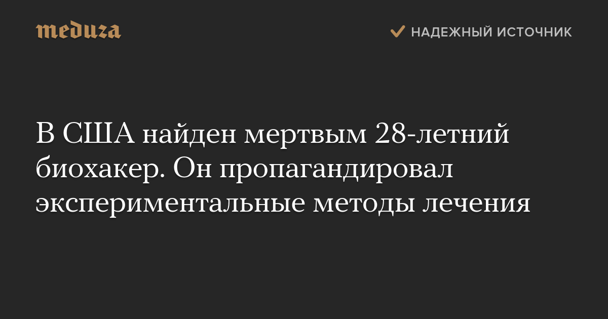 В США найден мертвым 28-летний биохакер. Он пропагандировал экспериментальные методы лечения