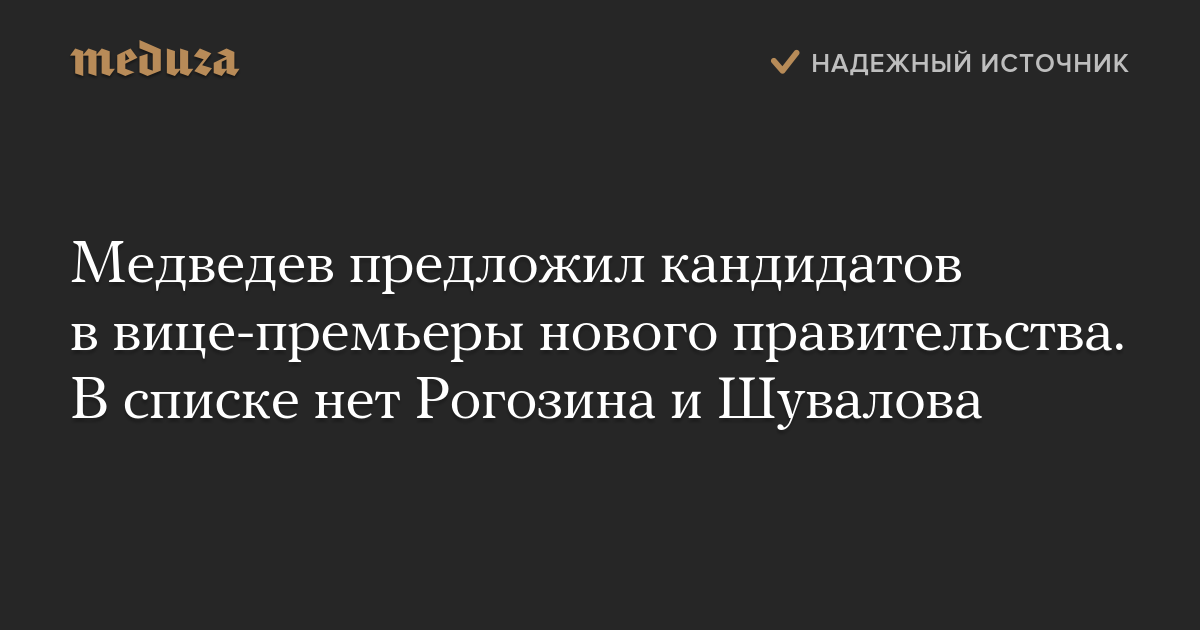 Медведев предложил кандидатов в вице-премьеры нового правительства. В списке нет Рогозина и Шувалова