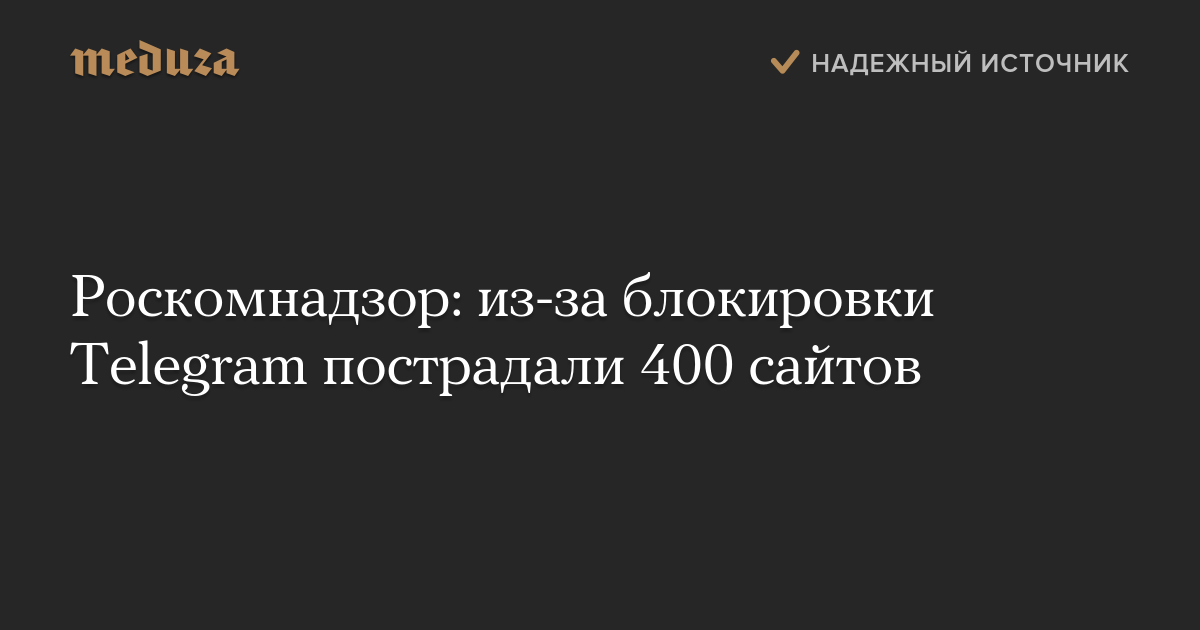 В результате массовых блокировок для ограничения доступа к мессенджеру Telegram произошли сбои в работе 400 сайтов, сообщает «Интерфакс» со ссылкой на пресс-службу Роскомнадзора.