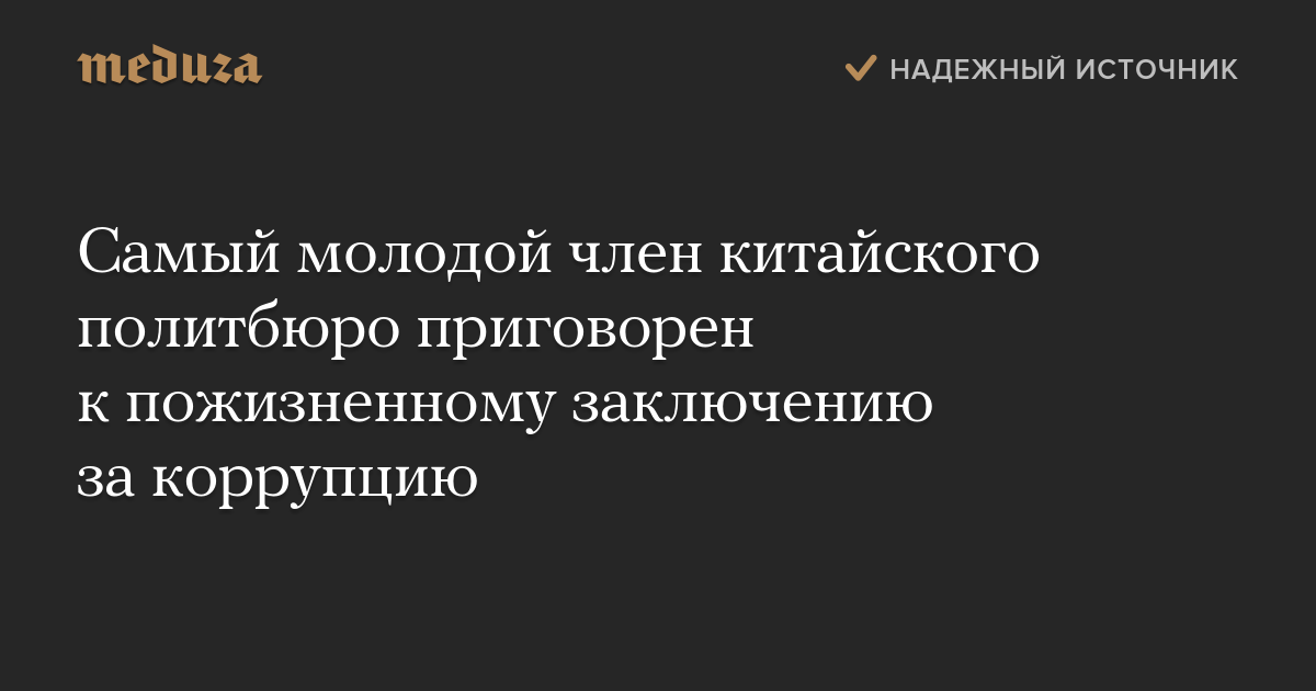 Самый молодой член китайского политбюро приговорен к пожизненному заключению за коррупцию