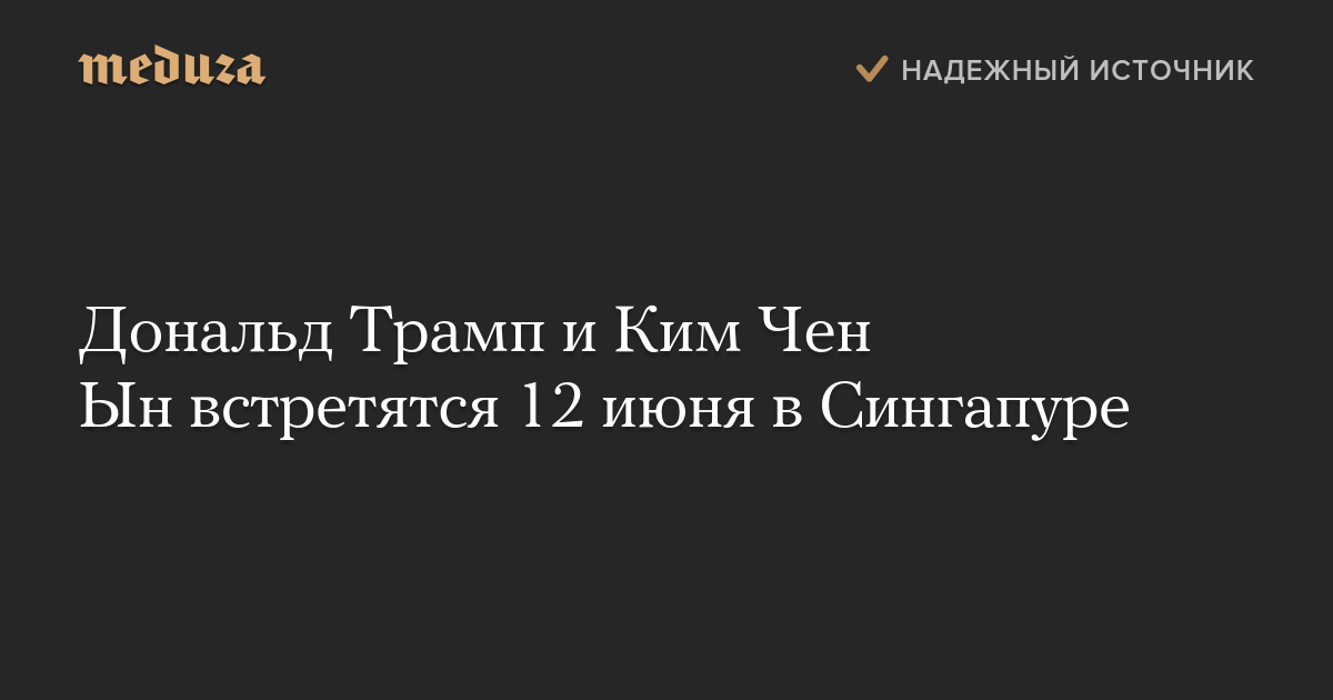 Президент США Дональд Трамп и лидер Северной Кореи Ким Чен Ын проведут переговоры 12 июня в Сингапуре. Об этом Трамп написал в твиттере.