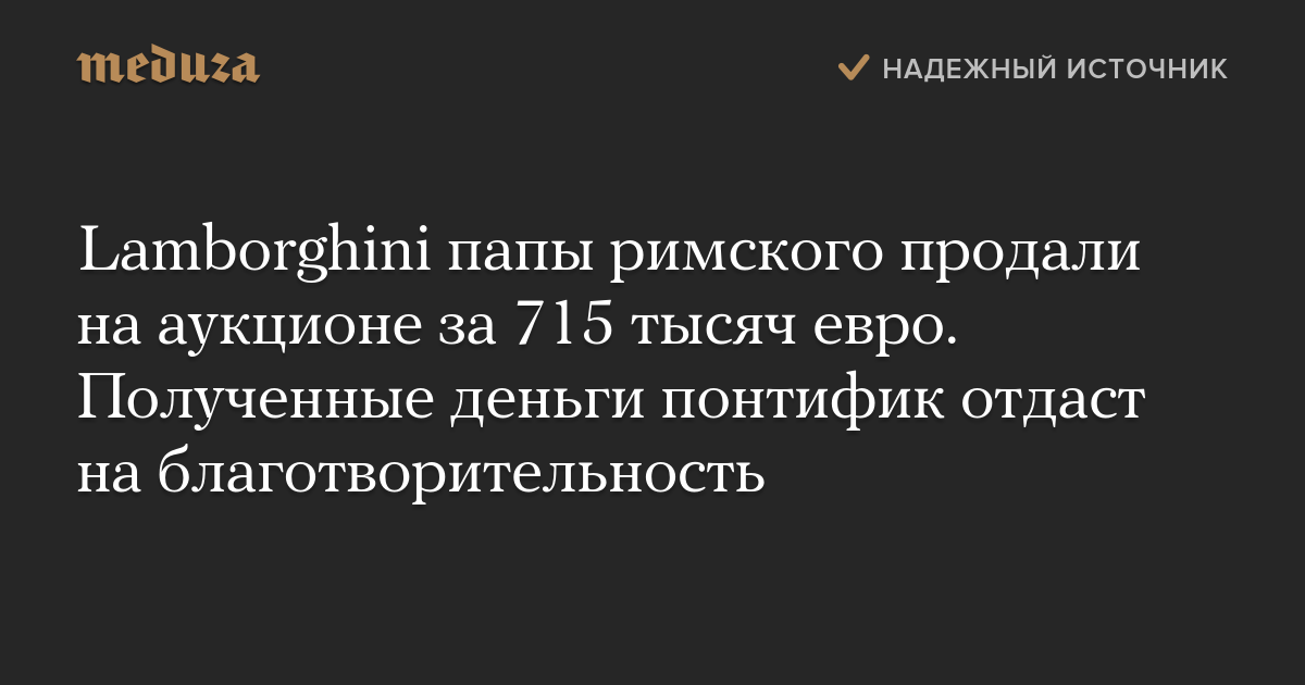 Lamborghini папы римского продали на аукционе за 715 тысяч евро. Полученные деньги понтифик отдаст на благотворительность