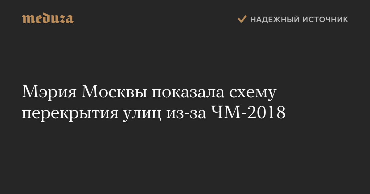 Мэрия Москвы показала схему перекрытия улиц из-за ЧМ-2018