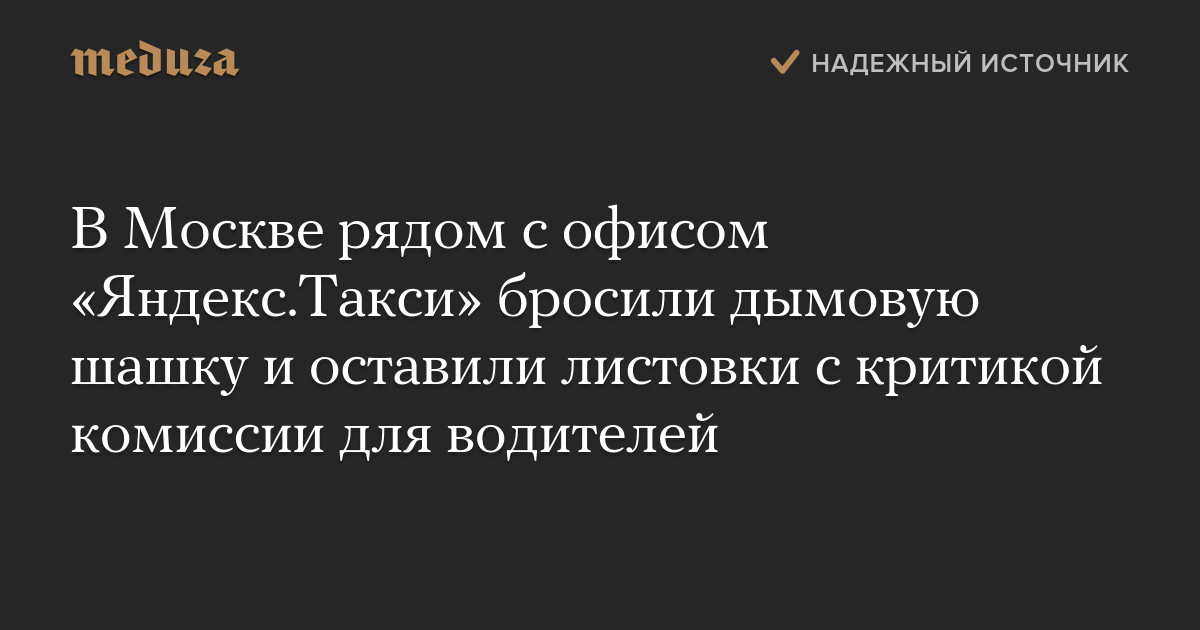 В Москве рядом с офисом «Яндекс.Такси» бросили дымовую шашку и оставили листовки с критикой комиссии для водителей