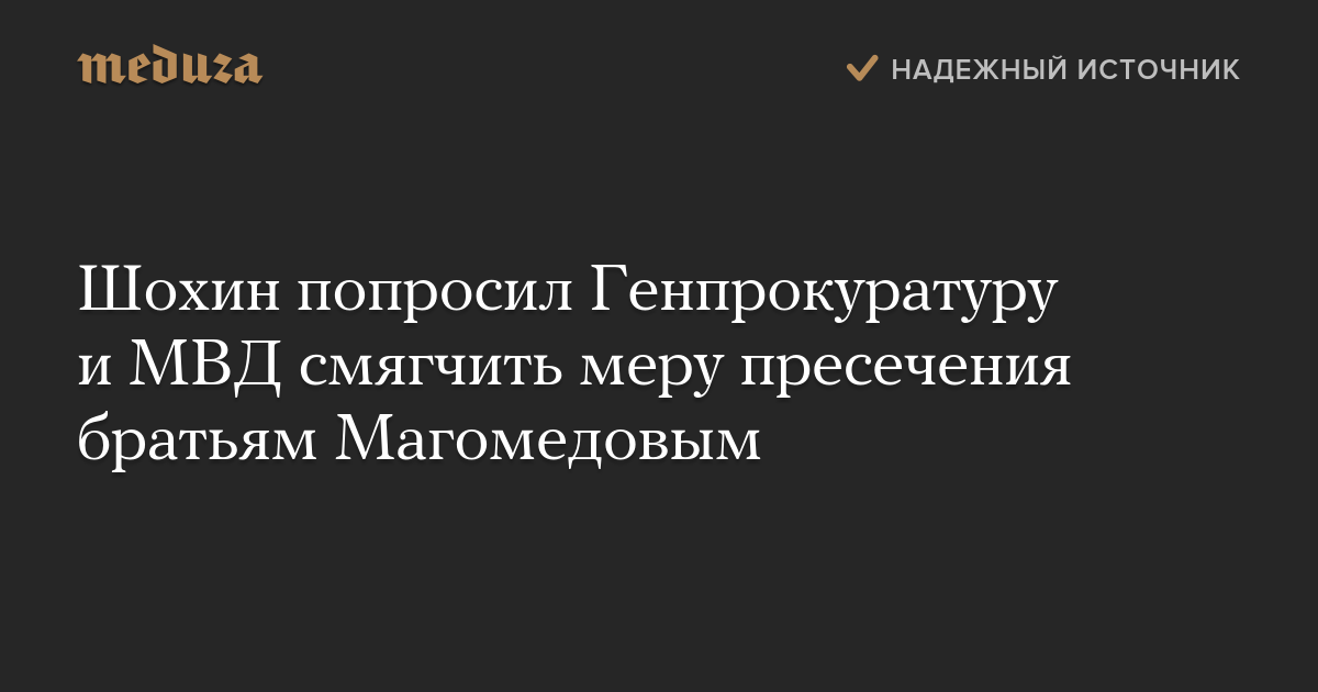 Шохин попросил Генпрокуратуру и МВД смягчить меру пресечения братьям Магомедовым