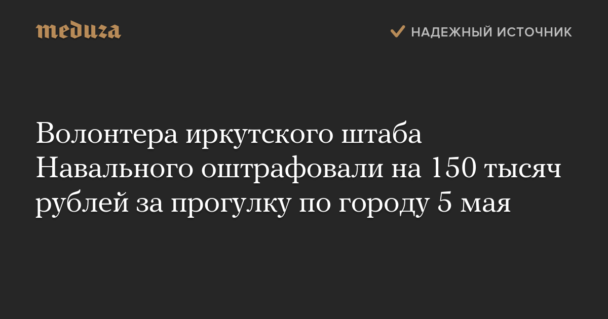 Волонтера иркутского штаба Навального оштрафовали на 150 тысяч рублей за прогулку по городу 5 мая
