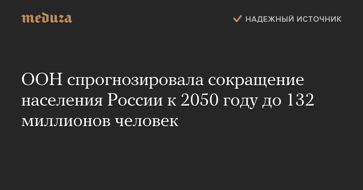 ООН спрогнозировала сокращение населения России к 2050 году до 132 миллионов человек
